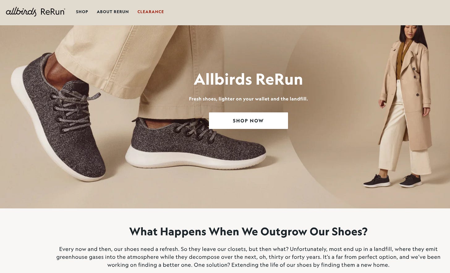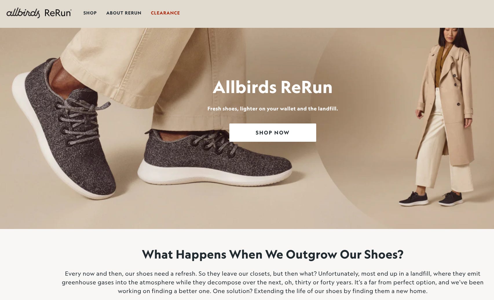 Here’s a look at Allbirds’ ReRun page: