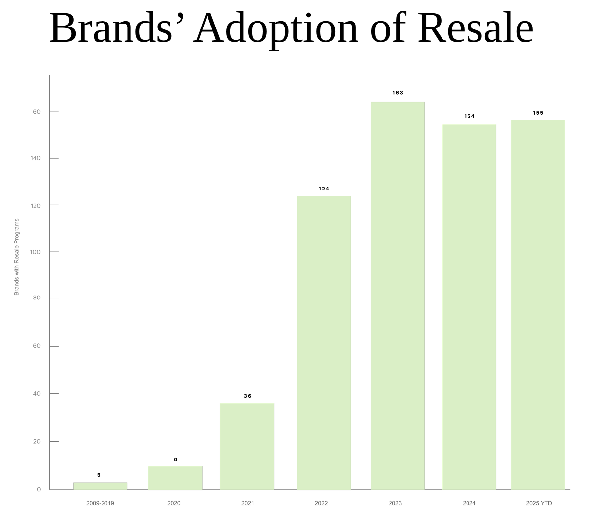 As of October 2025, according to ThredUp’s Recommerce 100, which tracks the number of brands with in-house resale programs, there are now…155(!!) that offer their own resale programs.