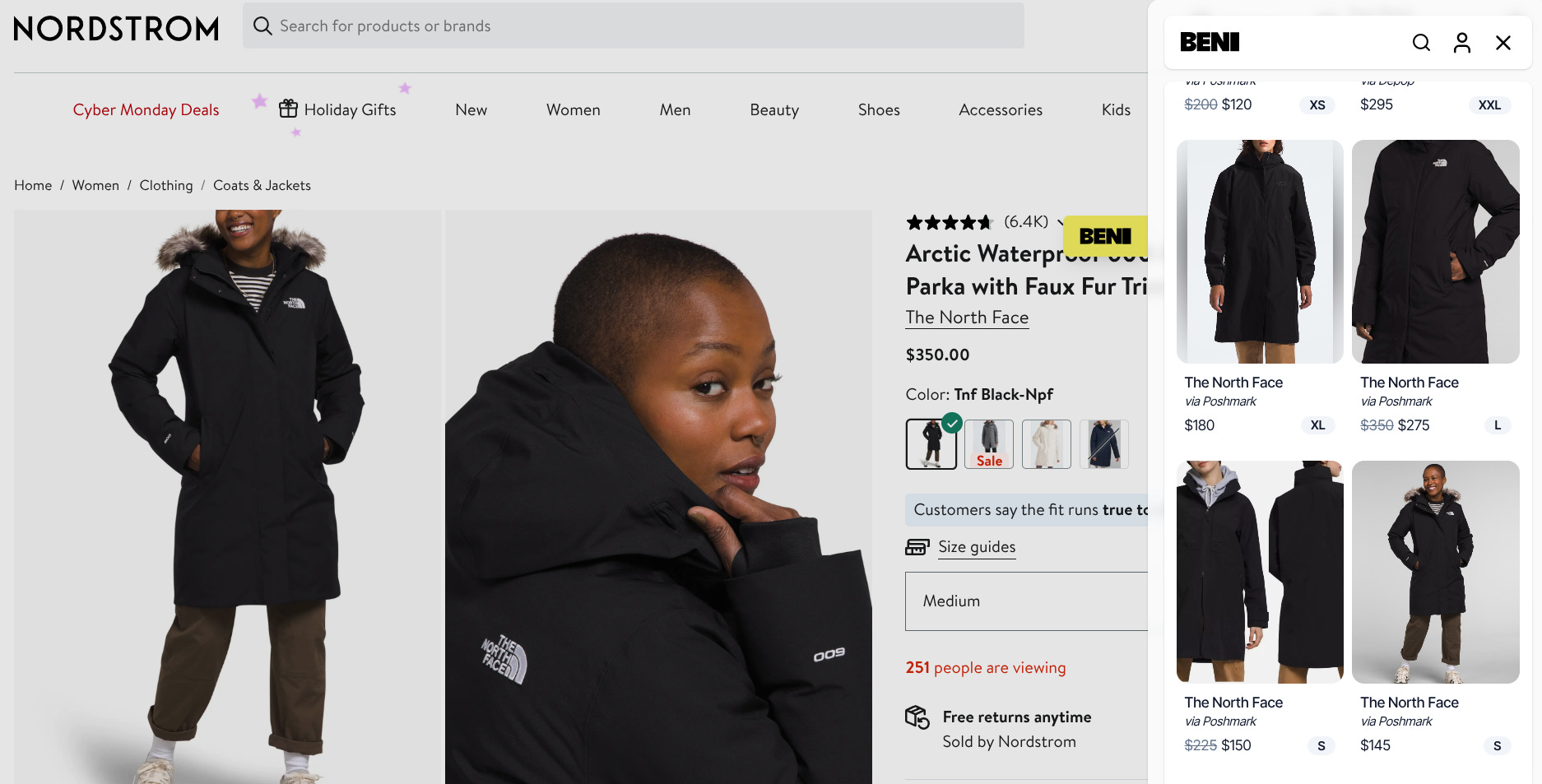 If you are not familiar with Beni, it is a free extension you can install on your web browser, e.g., Chrome, Safari. Whenever you visit a product detail page on an shopping website like Nordstrom, Anthropologie, Ugg, etc., the Beni symbol will pop up on the right side of your screen, and it will show you where you can find the exact same item (or very similar) secondhand. It does this by automatically scraping more than 40 resale platforms like ThredUp, Poshmark, eBay, The RealReal, Patagonia Worn Wear, Vestaire Collective, etc. in order to find you the lowest prices on that item. I had to try it.