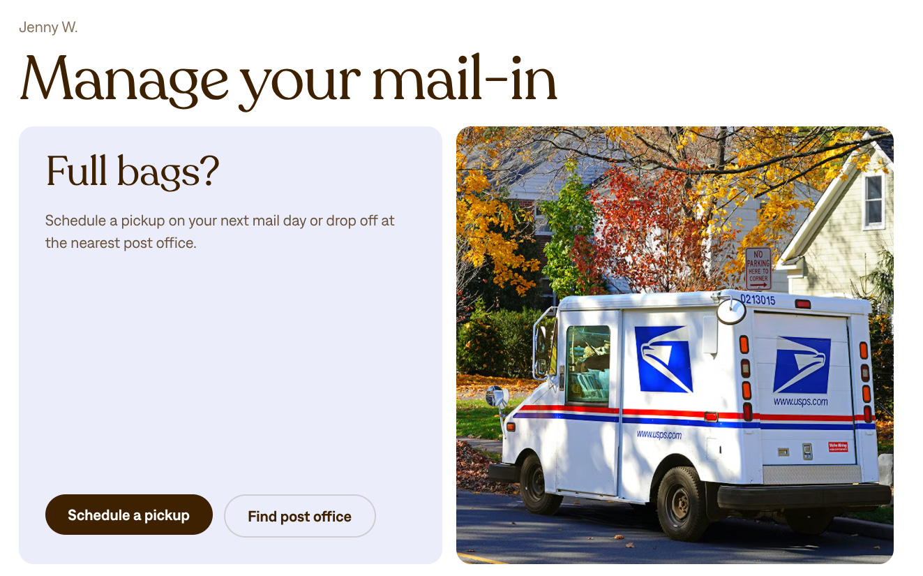 Once you fill your bags, you can arrange a next-day USPS pickup from your porch if you don’t want to drop them off yourself at a Post Office. I do the USPS pickup, and it works like a charm.