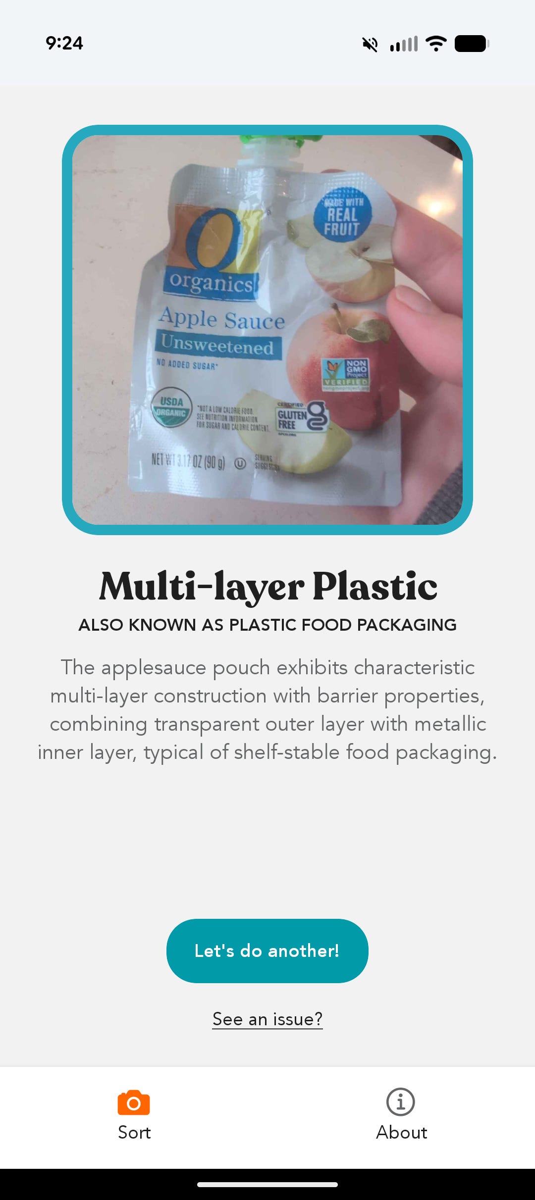 But Ridwell knew to plan for this and created a really cool AI-powered companion app called Sortwell to help you figure it out. You just take a photo in the app of the packaging you aren’t sure about, and it spits out a response about where it belongs in about 10 seconds. It will also say “Not Applicable” if something doesn’t belong in either bag. So. Helpful.