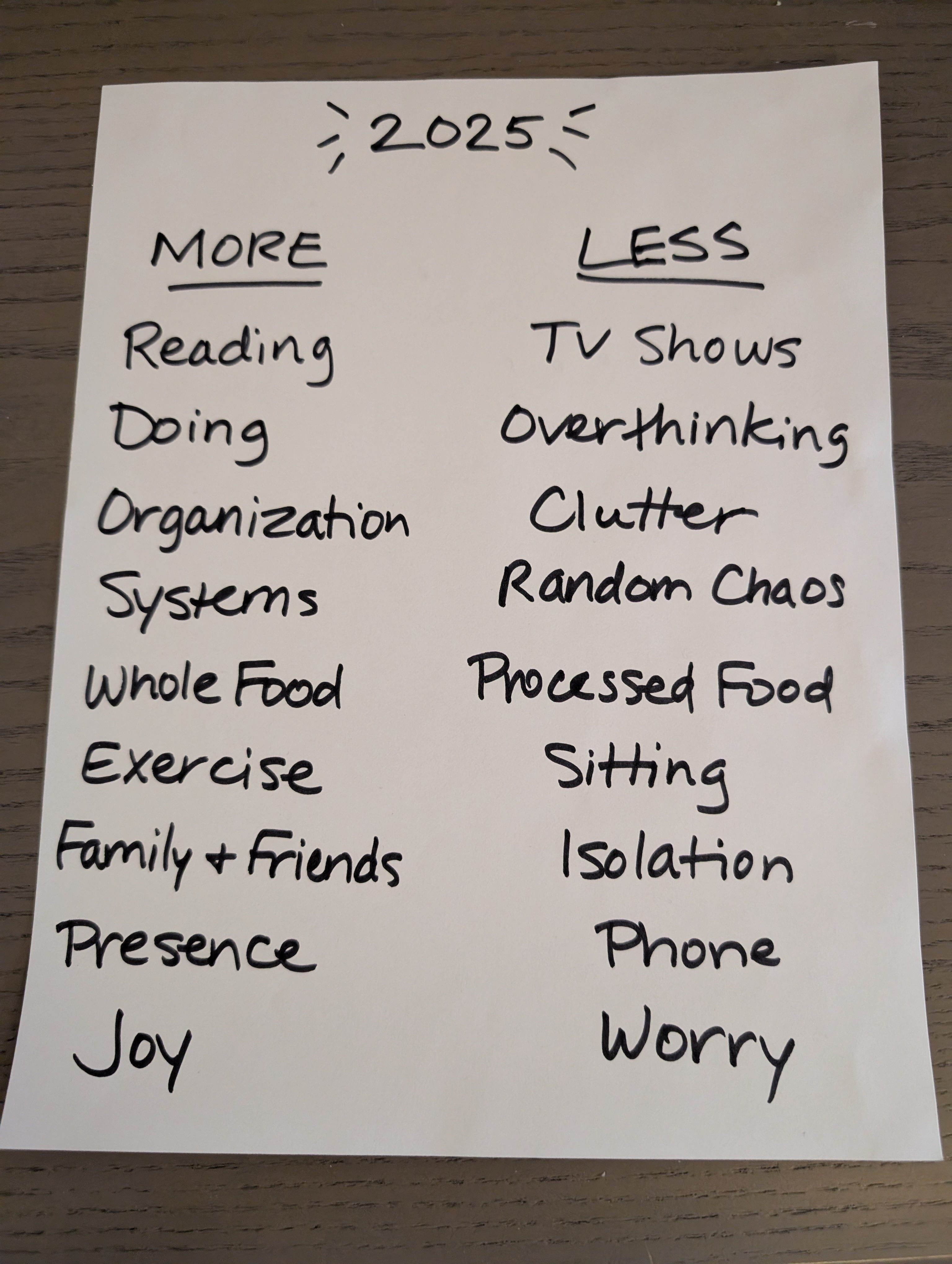 In January 2025, I discovered something called a More/Less List, which was first created in 2017 by an author named Julia Rothman.