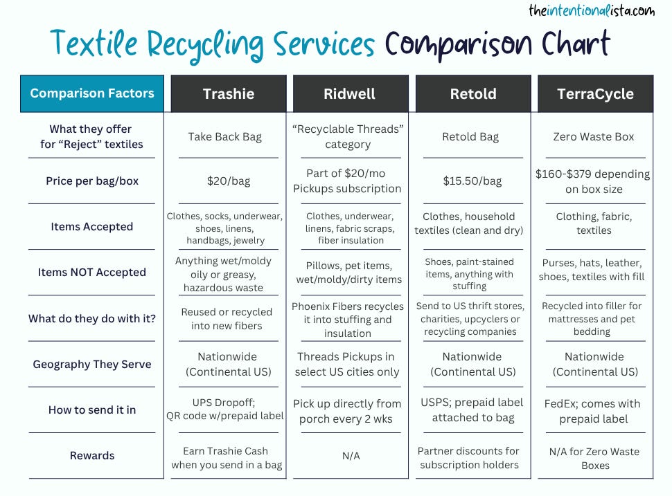 You might recall Ridwell from one of my earlier posts (and I’m a big fan!), but unfortunately the “Recyclable Threads” category is only offered through their Pick Up subscription, which is not available everywhere. So as a Ridwell Mail-In customer, I sadly don’t have access to this feature. (Check if your city is one of the lucky ones here).