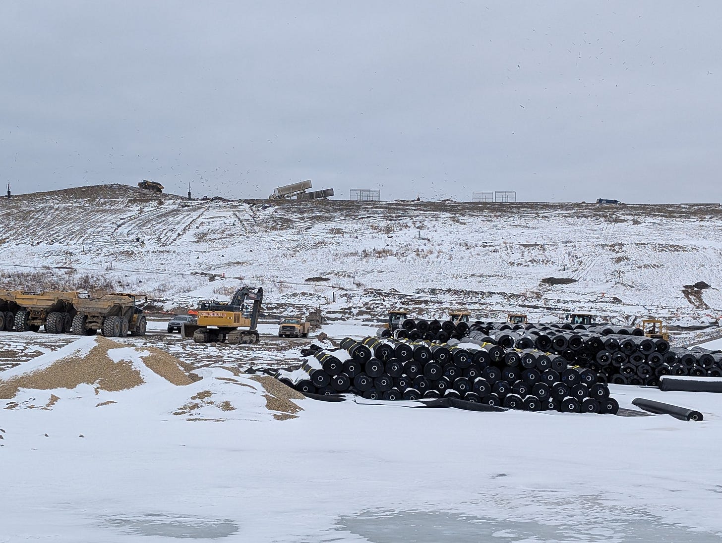 Now, for a tour exclusive. ✨ Here is something most people never see: the bottom of a landfill hole. It’s a bit hard to grasp the breadth and depth from this photo because of the snow, but this hole is 70 ft deep and 10 acres wide! When it’s at final cap, it will be 170 ft. tall (100 ft above ground level).